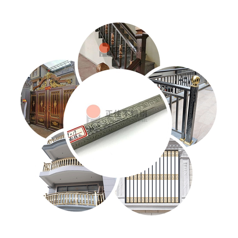本款產品是一種新型的藝術不銹鋼,在不銹鋼管的表面壓出漂亮復雜的花紋,可定制各種個性化花紋。廣泛應用于各種建筑裝飾!